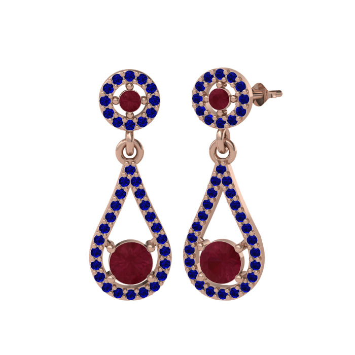 Kök yakut ve lab safir 925 ayar rose altın kaplama gümüş küpe