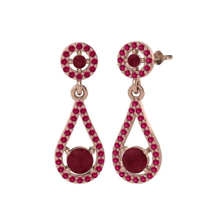 Kök yakut ve rodolit garnet 8 ayar rose altın küpe