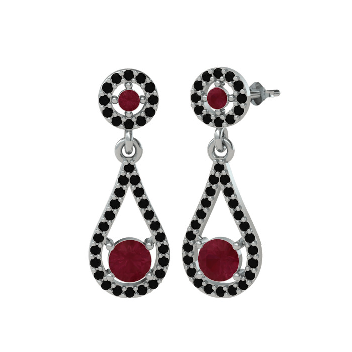 Kök yakut ve siyah zirkon 18 ayar beyaz altın küpe