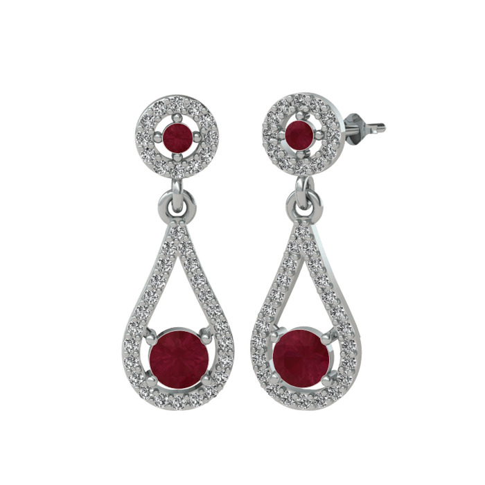 Kök yakut ve swarovski 8 ayar beyaz altın küpe