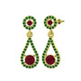 Kök yakut ve yeşil kuvars 8 ayar altın küpe