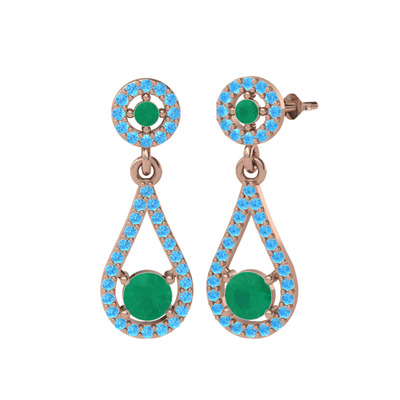 Kök zümrüt ve akuamarin 18 ayar rose altın küpe