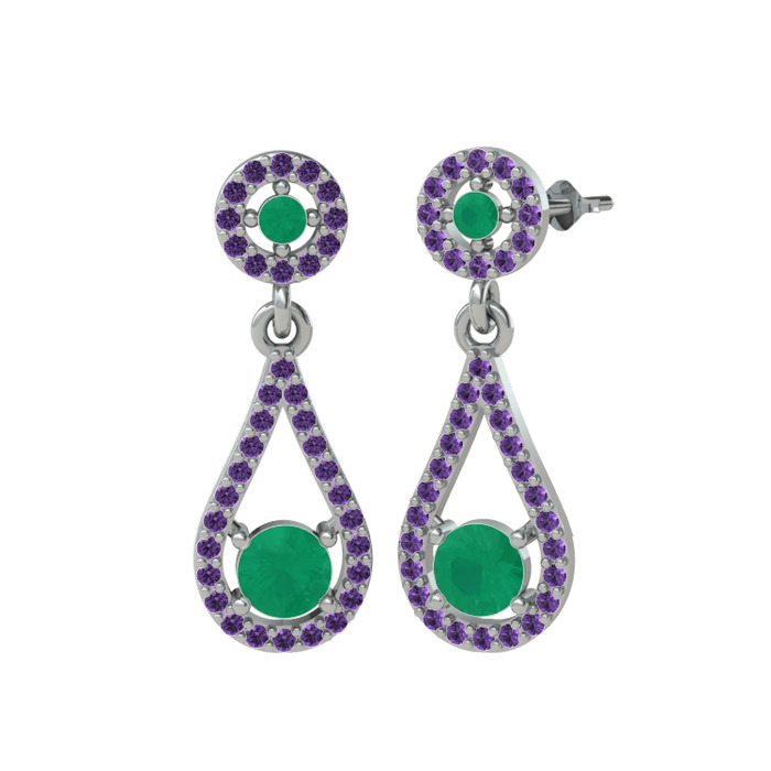 Kök zümrüt ve ametist 925 ayar gümüş küpe