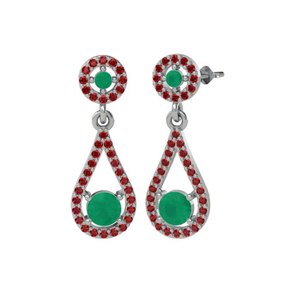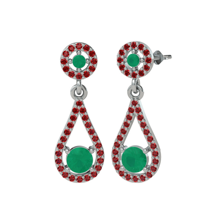 Kök zümrüt ve garnet 8 ayar beyaz altın küpe