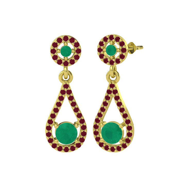 Kök zümrüt ve kök yakut 14 ayar altın küpe