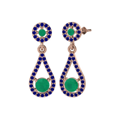 Kök zümrüt ve lab safir 18 ayar rose altın küpe