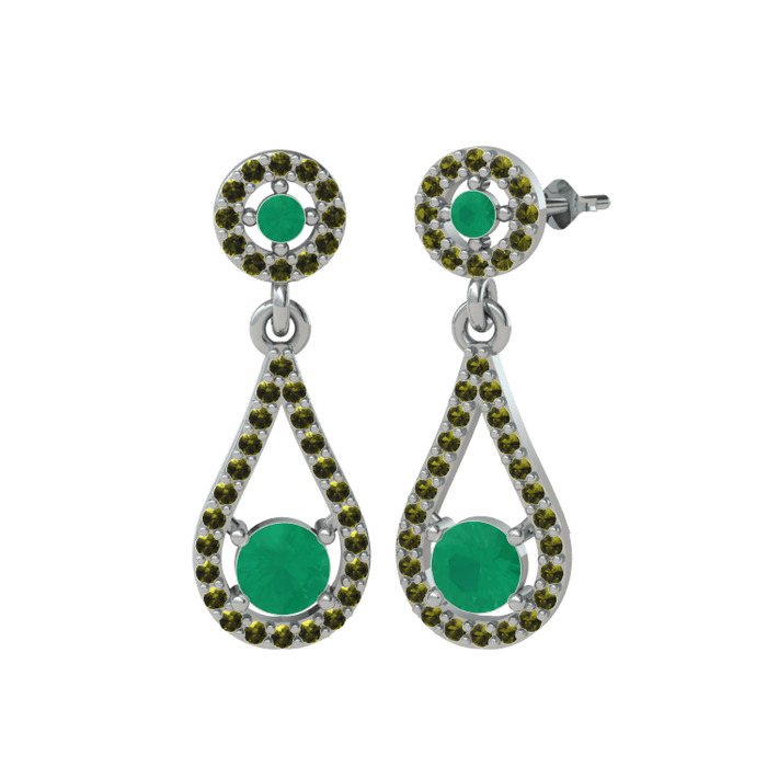 Kök zümrüt ve peridot 14 ayar beyaz altın küpe