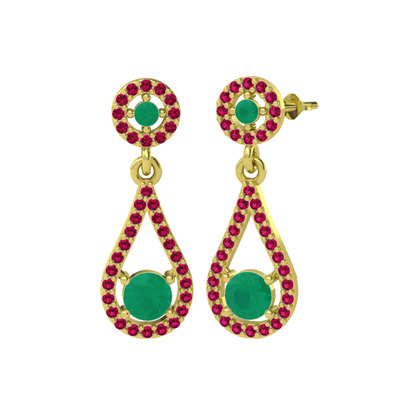 Kök zümrüt ve rodolit garnet 14 ayar altın küpe