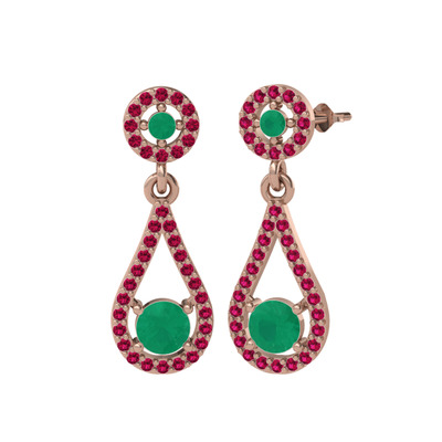 Kök zümrüt ve rodolit garnet 18 ayar rose altın küpe