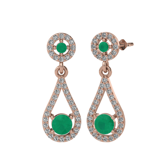 Kök zümrüt ve swarovski 18 ayar rose altın küpe