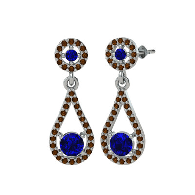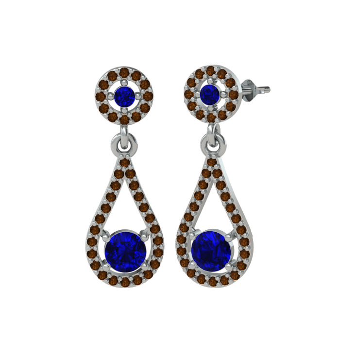 Lab safir ve dumanlı kuvars 925 ayar gümüş küpe
