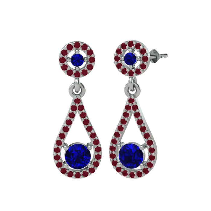 Lab safir ve kök yakut 14 ayar beyaz altın küpe