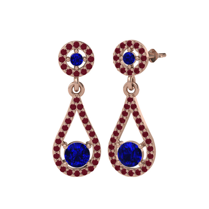 Lab safir ve kök yakut 925 ayar rose altın kaplama gümüş küpe