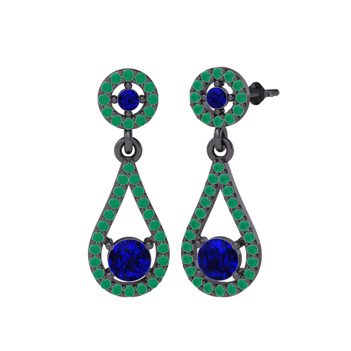 Lab safir ve kök zümrüt 925 ayar siyah rodyum kaplama gümüş küpe