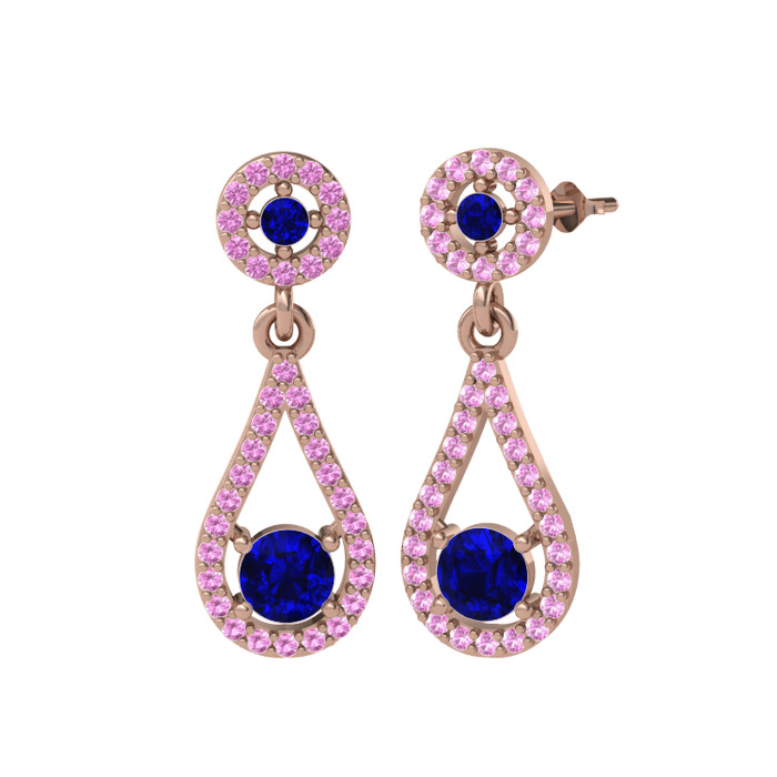 Lab safir ve pembe kuvars 18 ayar rose altın küpe