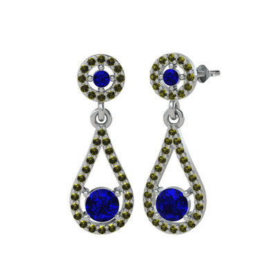 Lab safir ve peridot 18 ayar beyaz altın küpe