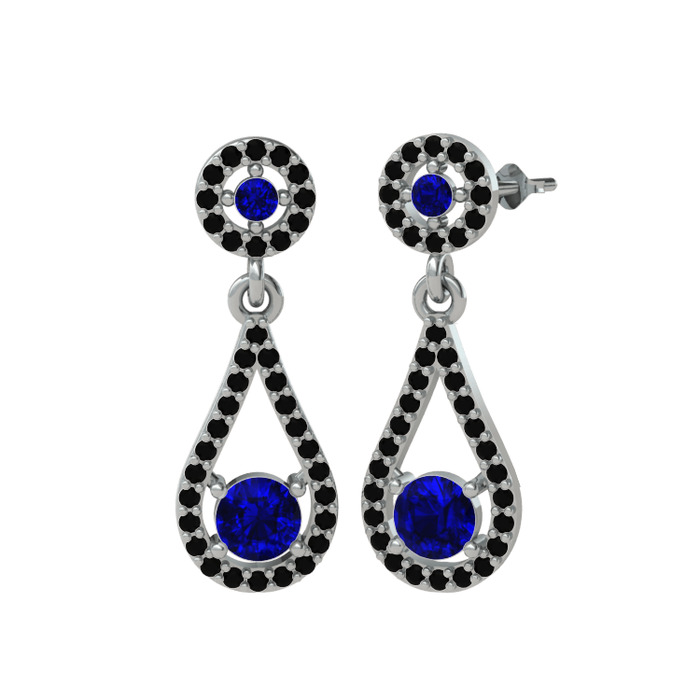 Lab safir ve siyah zirkon 18 ayar beyaz altın küpe