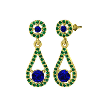 Lab safir ve yeşil kuvars 925 ayar altın kaplama gümüş küpe
