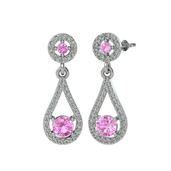 Pembe kuvars ve beyaz zirkon 925 ayar gümüş küpe