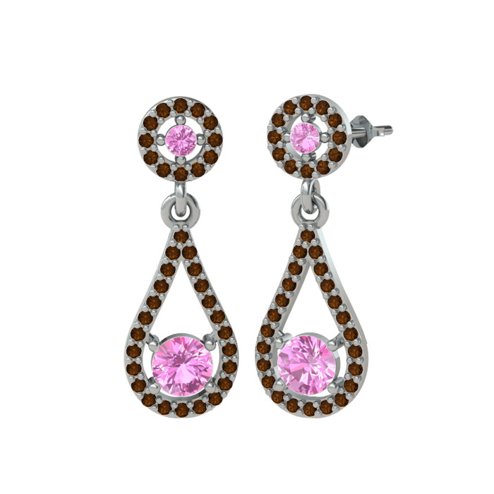 Pembe kuvars ve dumanlı kuvars 18 ayar beyaz altın küpe