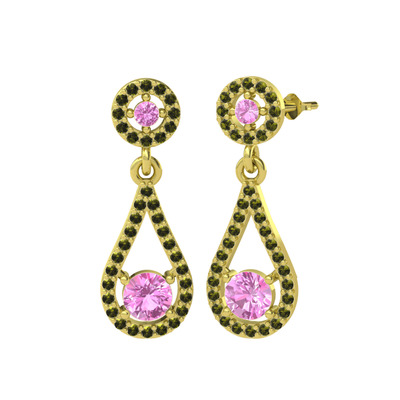 Pembe kuvars ve peridot 8 ayar altın küpe