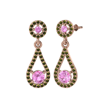 Pembe kuvars ve peridot 925 ayar rose altın kaplama gümüş küpe