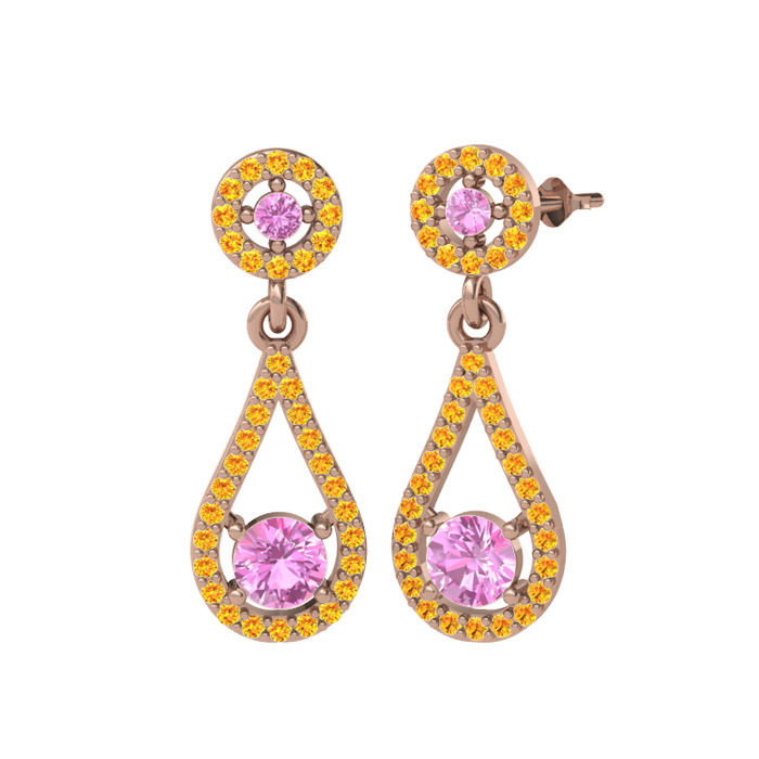 Pembe kuvars ve sitrin 8 ayar rose altın küpe