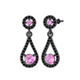 Pembe kuvars ve siyah zirkon 925 ayar siyah rodyum kaplama gümüş küpe