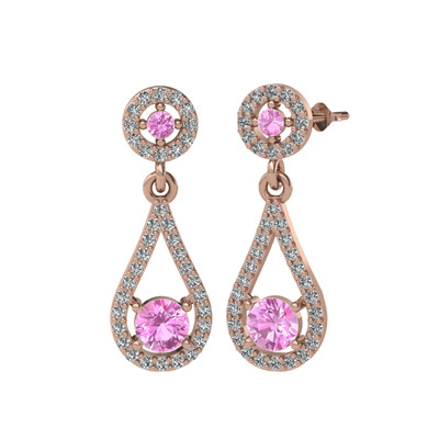 Pembe kuvars ve swarovski 925 ayar rose altın kaplama gümüş küpe