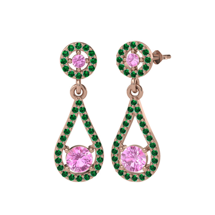Pembe kuvars ve yeşil kuvars 14 ayar rose altın küpe