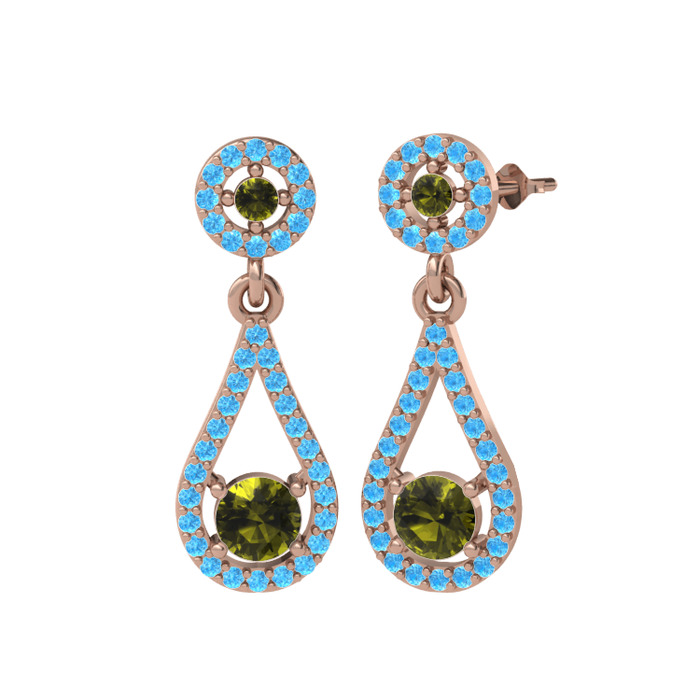 Peridot ve akuamarin 18 ayar rose altın küpe