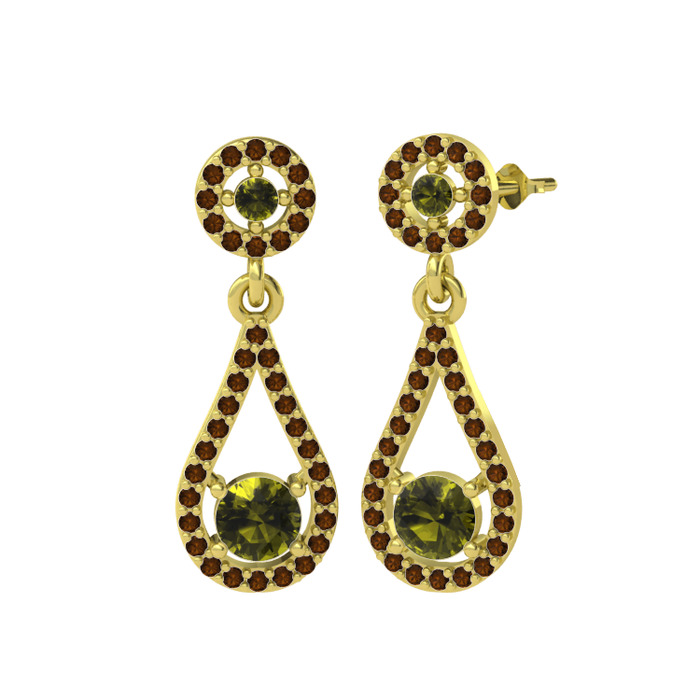 Peridot ve dumanlı kuvars 925 ayar altın kaplama gümüş küpe