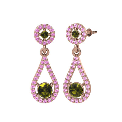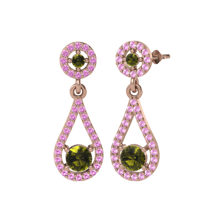 Peridot ve pembe kuvars 14 ayar rose altın küpe