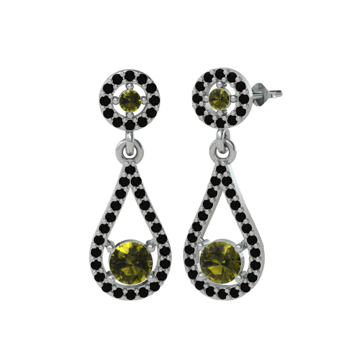 Peridot ve siyah zirkon 8 ayar beyaz altın küpe
