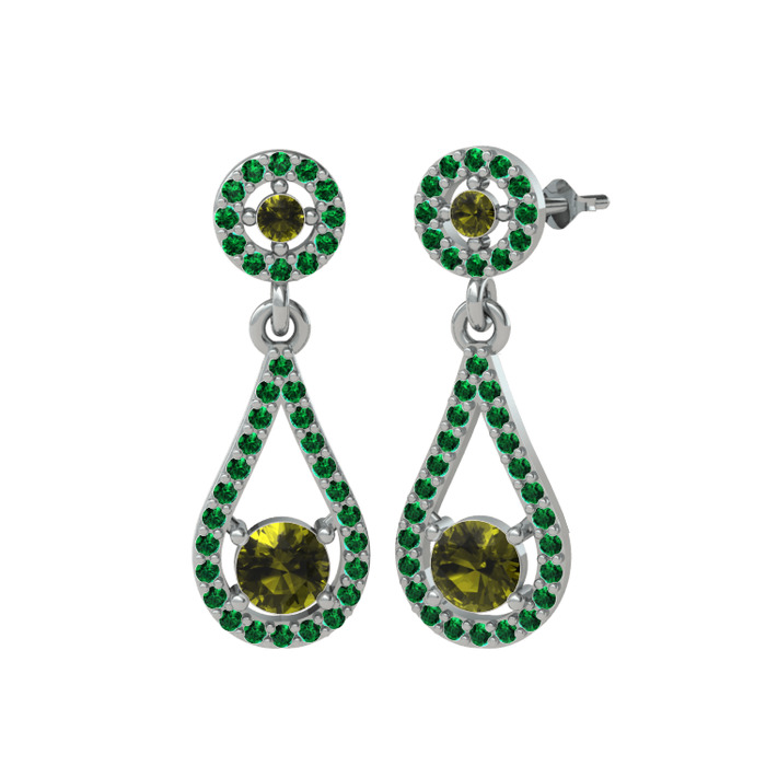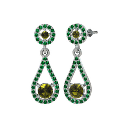 Peridot ve yeşil kuvars 18 ayar beyaz altın küpe