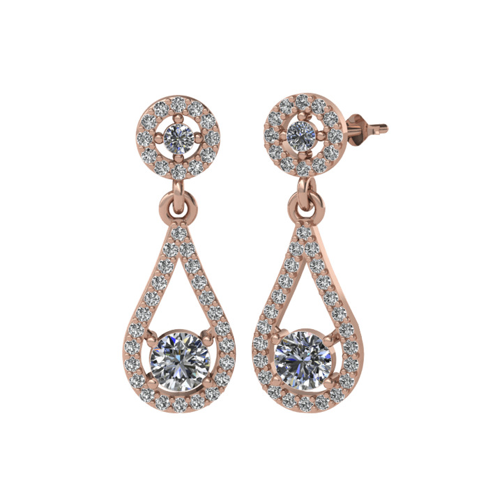 Pırlanta ve beyaz zirkon 8 ayar rose altın küpe (2 karat)
