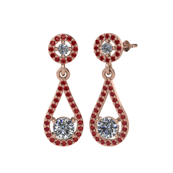 Pırlanta ve garnet 925 ayar rose altın kaplama gümüş küpe (2 karat)
