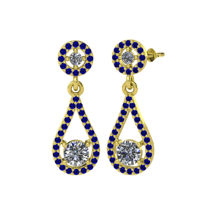 Pırlanta ve lab safir 18 ayar altın küpe (2 karat)