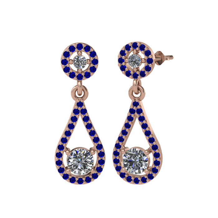 Pırlanta ve lab safir 925 ayar rose altın kaplama gümüş küpe (2 karat)