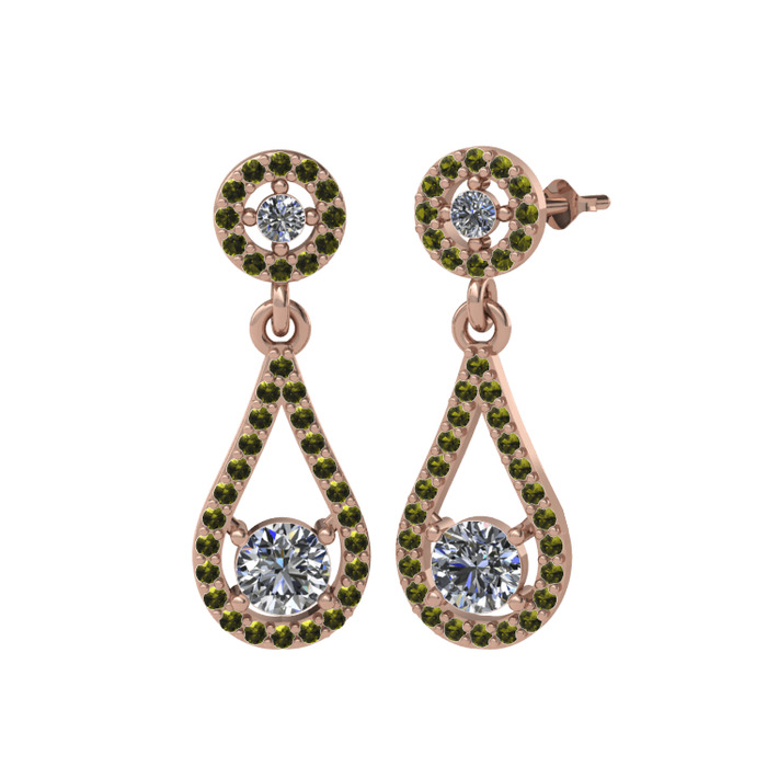 Pırlanta ve peridot 18 ayar rose altın küpe (2 karat)