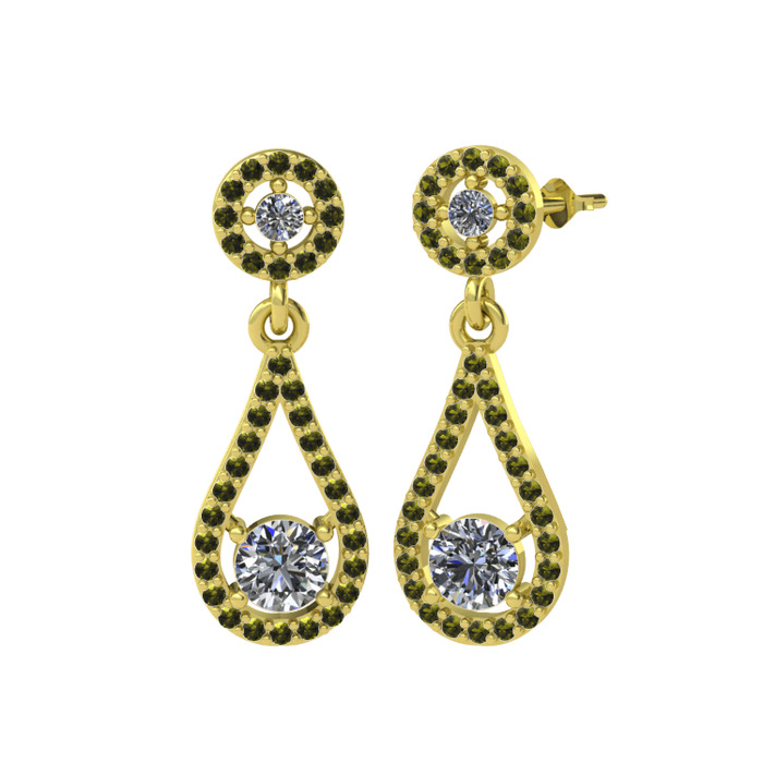Pırlanta ve peridot 925 ayar altın kaplama gümüş küpe (2 karat)