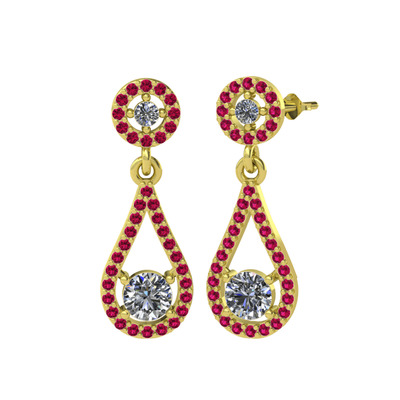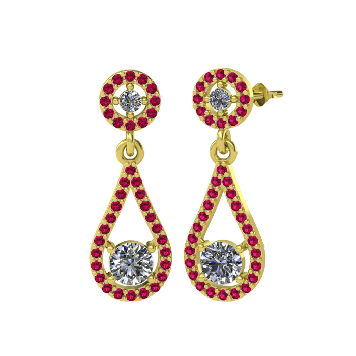Pırlanta ve rodolit garnet 925 ayar altın kaplama gümüş küpe (2 karat)
