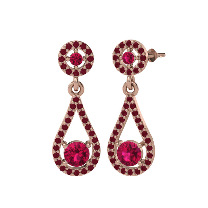 Rodolit garnet ve kök yakut 18 ayar rose altın küpe