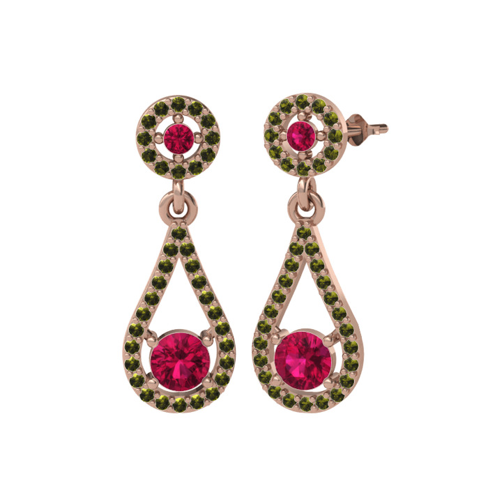 Rodolit garnet ve peridot 925 ayar rose altın kaplama gümüş küpe