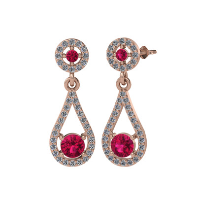 Rodolit garnet ve pırlanta 8 ayar rose altın küpe (0.792 karat)
