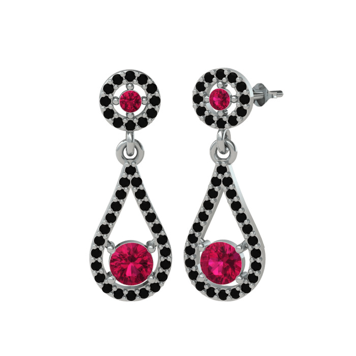 Rodolit garnet ve siyah zirkon 18 ayar beyaz altın küpe