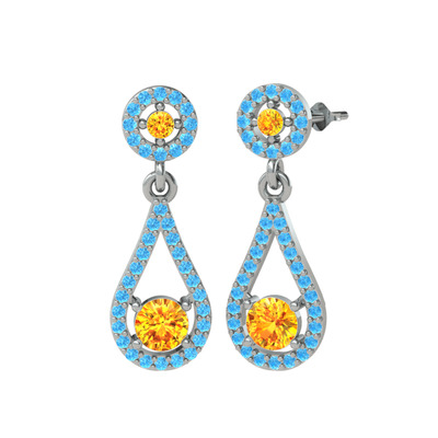 Sitrin ve akuamarin 18 ayar beyaz altın küpe