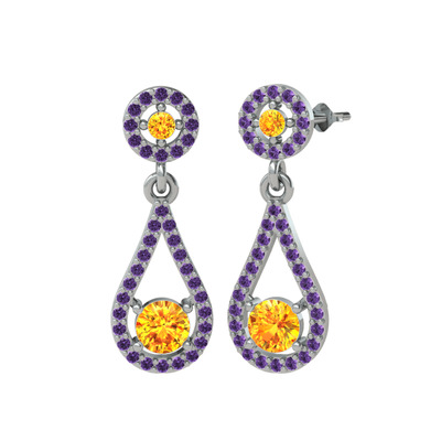 Sitrin ve ametist 8 ayar beyaz altın küpe