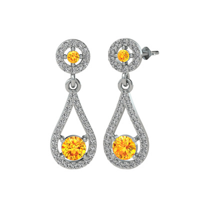 Sitrin ve beyaz zirkon 14 ayar beyaz altın küpe