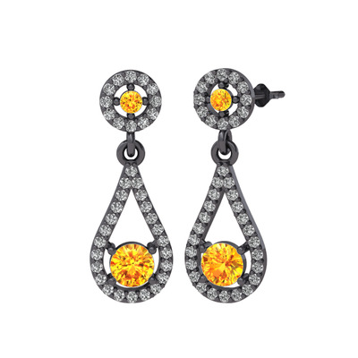 Sitrin ve beyaz zirkon 925 ayar siyah rodyum kaplama gümüş küpe